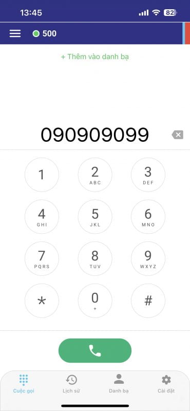 Tại giao diện cuộc gọi, tiến hành bấm số điện thoại để gọi