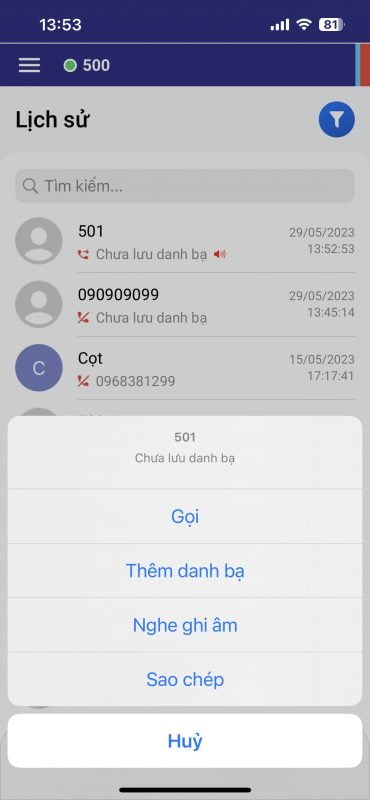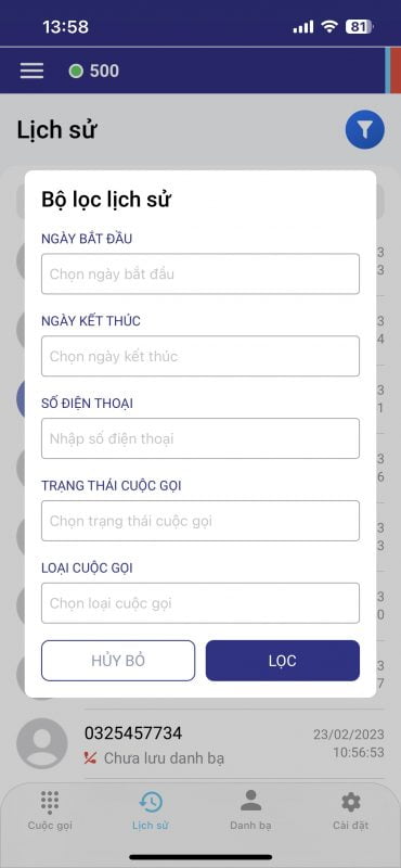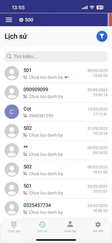 - Xem lại tất cả lịch sử cuộc gọi tại đây