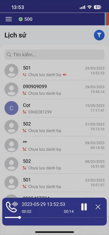 Với các cuộc gọi thành công, sẽ có nút để nghe lại file ghi âm