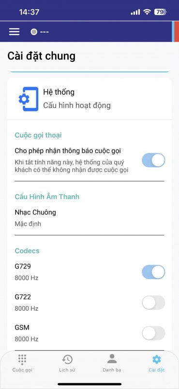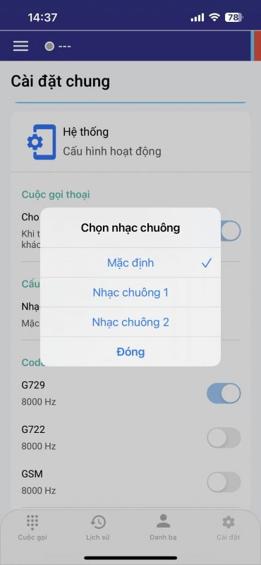 - Hệ thống: Cấu hình thông báo và nhạc chuông