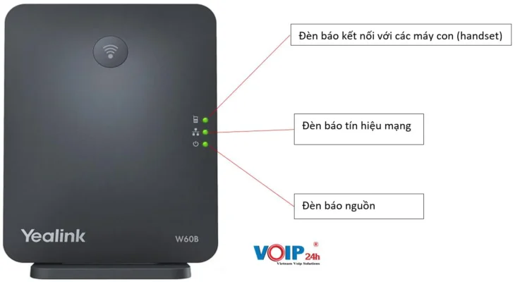 - Bước 1: Đầu tiên ấn giữ khoảng 5s-7s nút có biểu tượng wifi trên trạm phát W60P sau đó đèn báo handset trên Base sẽ nhấp nháy phát tín hiệu đăng ký.